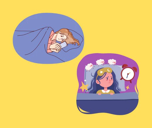 - Insomnia – difficulty falling asleep or staying asleep throughout the night.